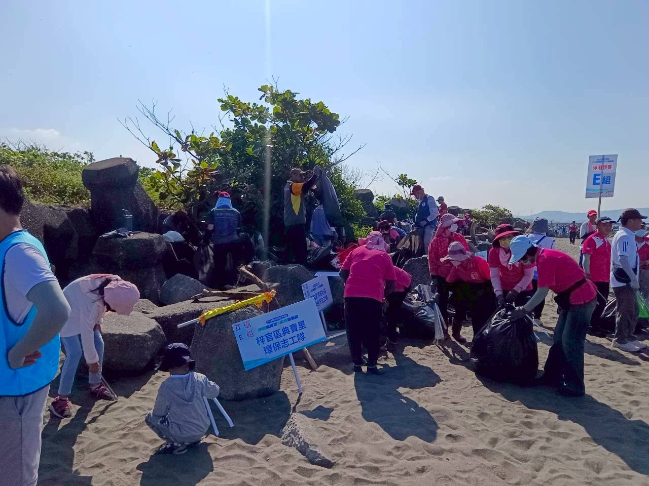 此次淨灘不僅是清理垃圾🧹,更加入了「淨灘秤重趣味競賽🎉」,讓環保行動多了一分樂趣與挑戰👫。參加隊伍在汗水與笑聲中比拚清潔成效✨,最終共清出約230公斤海岸廢棄物🪣,其中一般垃圾約154公斤、資源回收物約76公斤,成果亮眼👏。