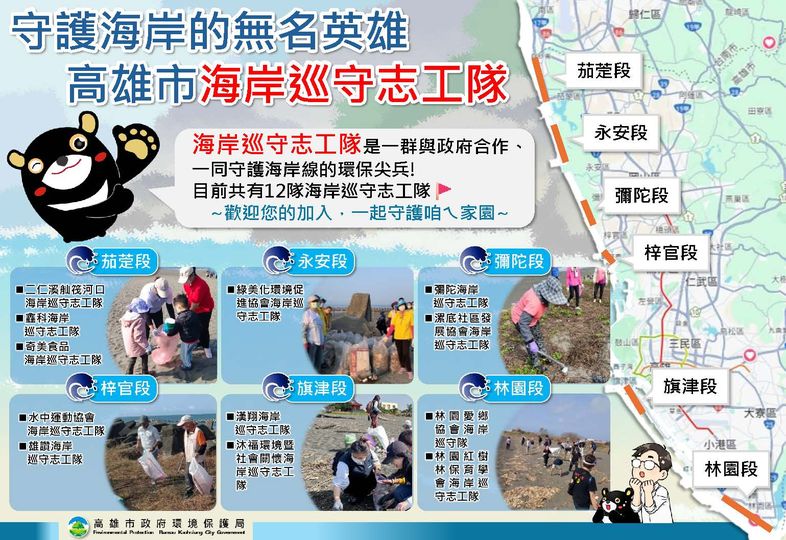 I would like to express my sincere gratitude to these hard-working coastal patrol volunteers who have demonstrated the spirit of environmental protection with their practical actions. We welcome all enthusiastic citizens or groups to join us 🙋♀️ and jointly protect Kaohsiung's beautiful coastline 🌈.